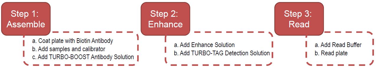 MSD’s electrochemiluminescence detection technology uses SULFO-TAG labels that emit light upon electrochemical stimulation initiated at the electrode surfaces of MULTI-ARRAY and MULTI-SPOT microplates. The MSD S-PLEX Neurology Panel 1 is a three-analyte ultrasensitive panel. The S-PLEX  platform uses ECL technology, retaining its well-known advantages and superior analytical performance. The improved sensitivity of S-PLEX assays is due to the proprietary TURBO-TAG and TURBO-BOOST reagents.